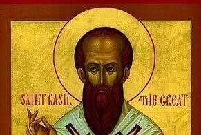 Saint Basil the Great was born in 329 in Caesarea of Cappadocia (present day Turkey), to a family renowned for their learning and holiness. His mother, Emily, and his grandmother, Macrina, are Saints of the Church, together with all his brothers and sisters: Macrina, Gregory of Nyssa, Peter of Sebastia, and Naucratius. Basil studied in Constantinople then in Athens, where also he formed a friendship with Gregory, a fellow Cappadocian, later called "the Theologian." Through the influence of his sister Macrina, he embraced the ascetical life and abandoned his worldly career. He visited the monks in Egypt, Palestine, Syria, and Mesopotamia, and when he returned to Caesarea, he went to a hermitage on the Iris River in Pontus, not far from Annesi, where his mother and his sister were already living ascetical lives. Here he wrote his ascetical homilies which were meant to help the faithful to more perfectly follow Christ and attain Christian perfection through self-discipline. He was a spiritual monastic who taught the importance of community and balance; a bishop who shepherded faithfully through treacherous controversies; a liturgist and scholarly theologian who contributed to the marriage of Christianity and classical culture in his time. The influence of St. Basil the Great remains among the best of Catholic tradition.